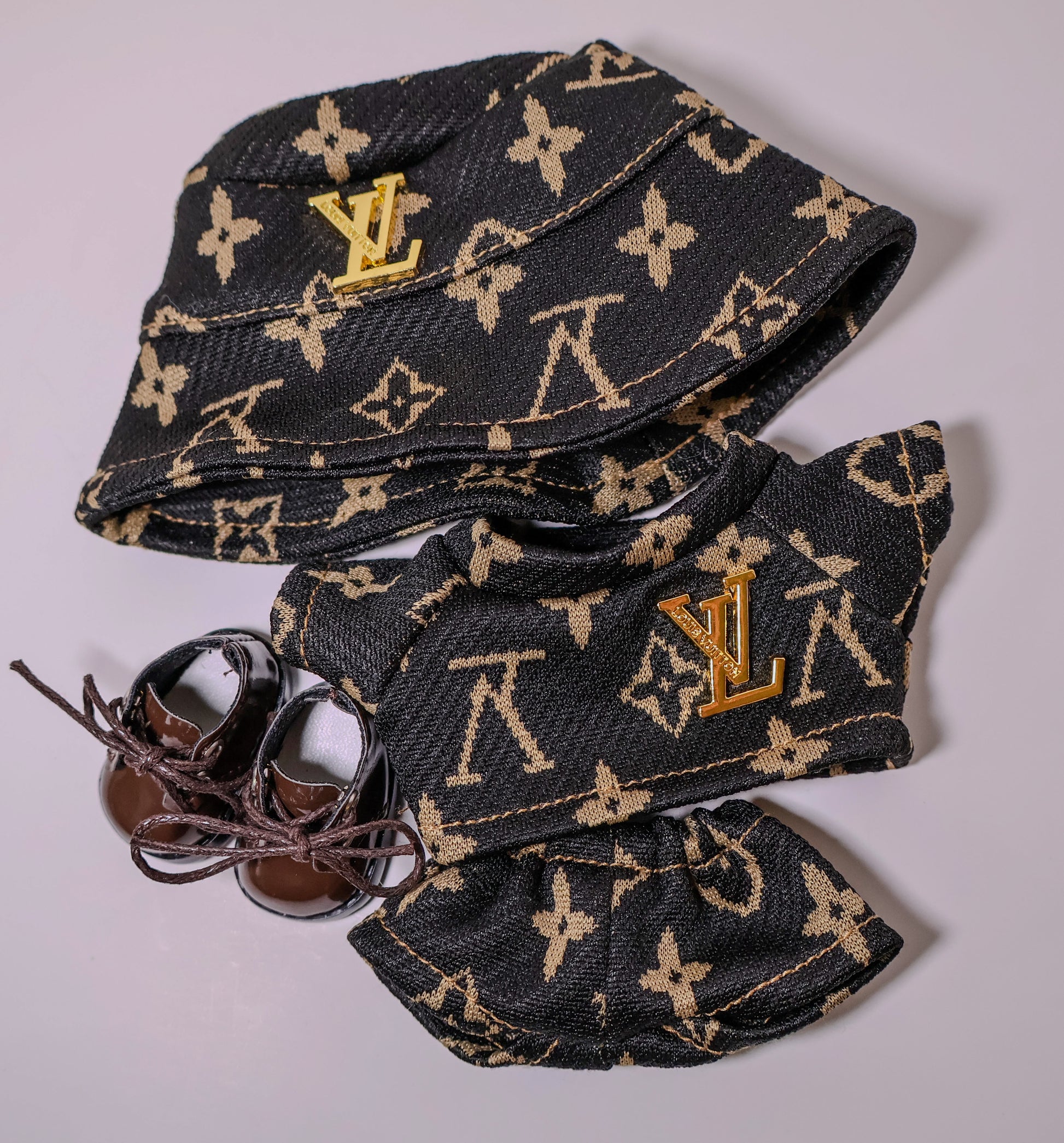 Black Monogram Outfit Set – Luxury Streetwear Style for Labubu