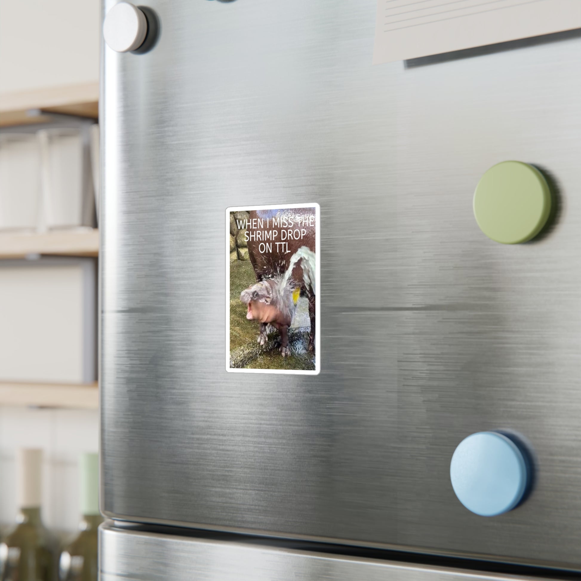 A hilariously dramatic baby hippo mid-scream as it gets splashed, perfectly capturing the chaos of missing a TTL shrimp drop. Ideal for those heart-stopping moments when you’re just one second too late. Let the group chat know: you’re not okay.