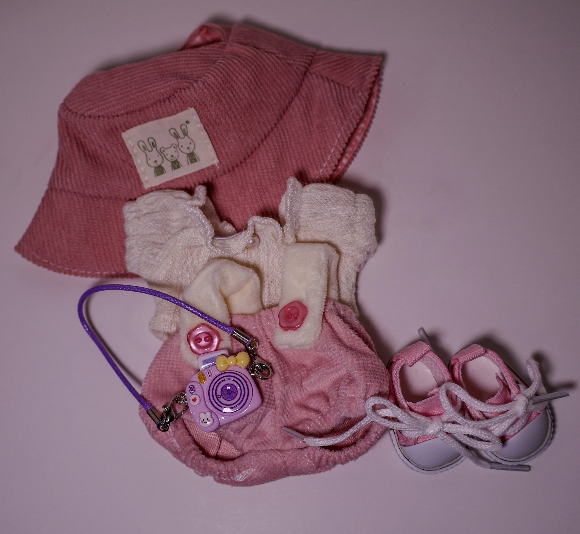 Add adventure and charm to your collection with the Pastel Pink Explorer outfit. Outfitted in a knitted sweater, buttoned vest, hat, and casual sneakers, this adorable figure captures a playful pastel aesthetic. Finished with a mini crossbody camera bag, it’s perfect for kawaii lovers and toy collectors who enjoy whimsical pastel style.