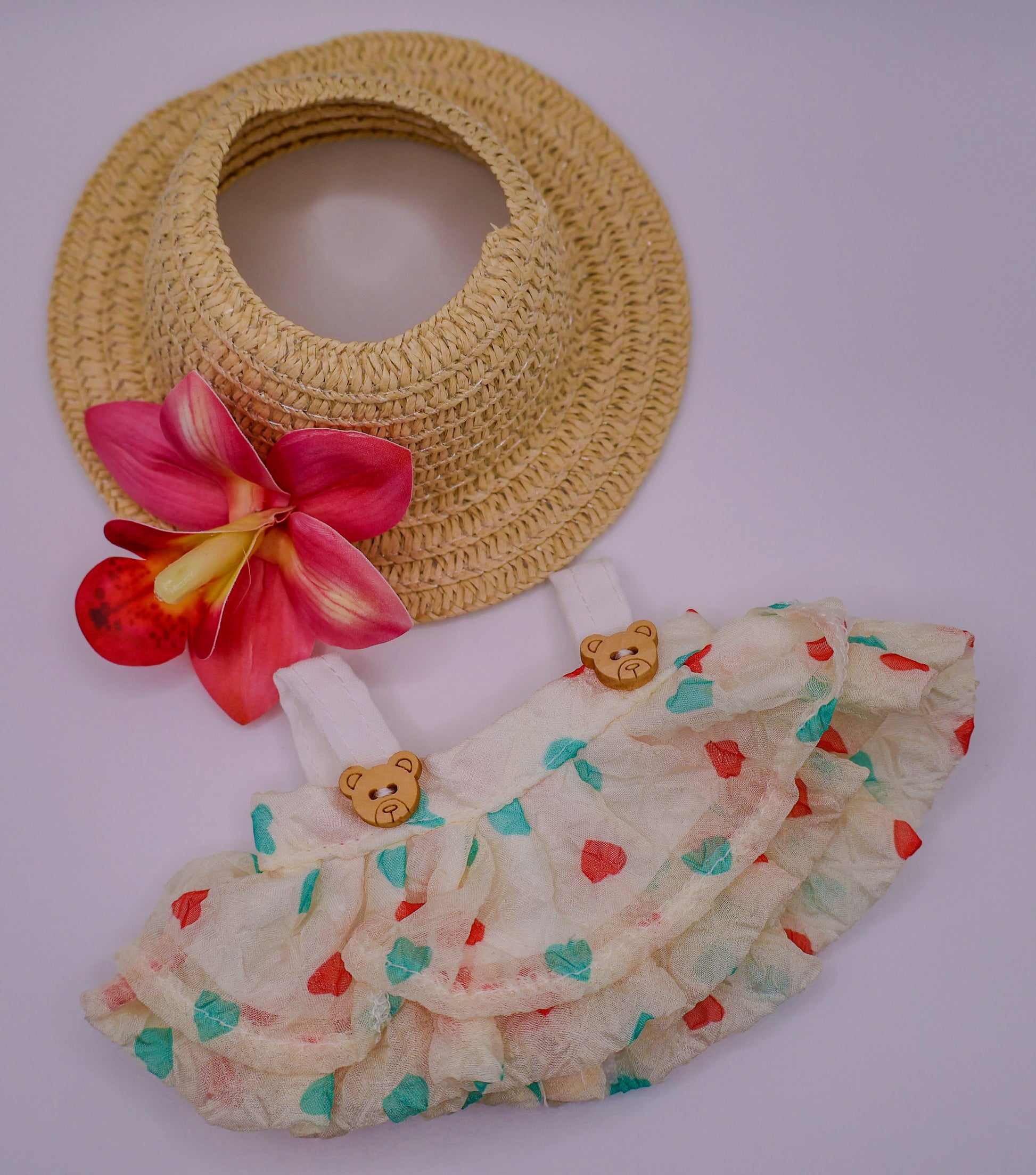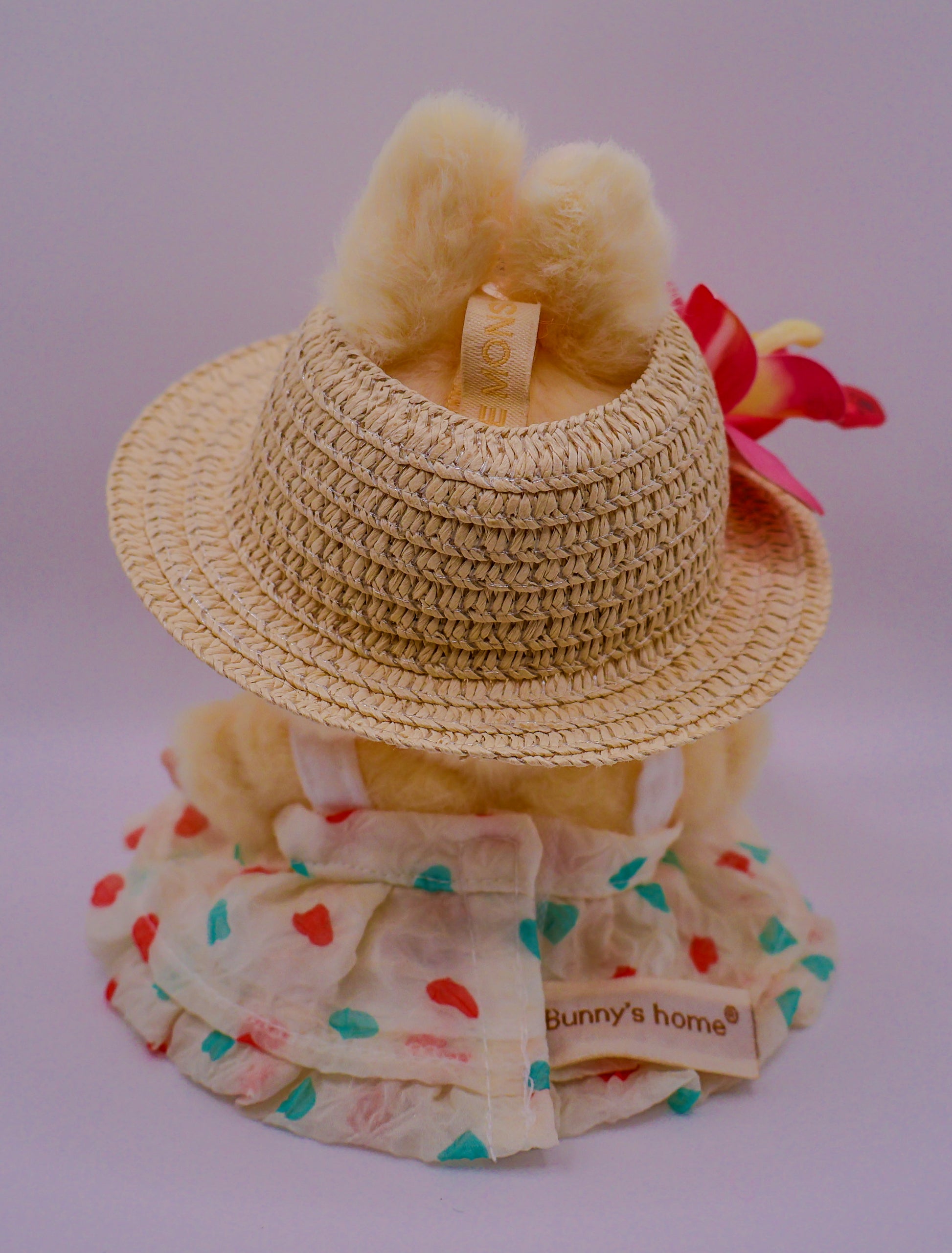 Yellow Summer Labubu Outfit – Floral Sunhat & Teddy Bear Dress